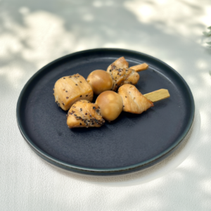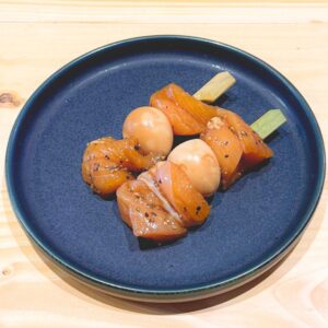 黒胡椒をアクセントに加え、ワインやハイボールにピッタリのおつまみ串に。
