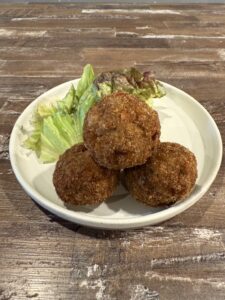 一口サイズの食べやすい鶏メンチに、クミンやコリアンダーをたっぷり利かせてアラビアンテイストに。