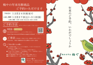 今年も、梅や本店では年末生鮮商品のご予約受け付けを開始いたしました。